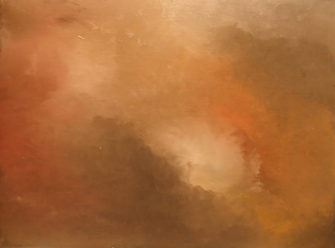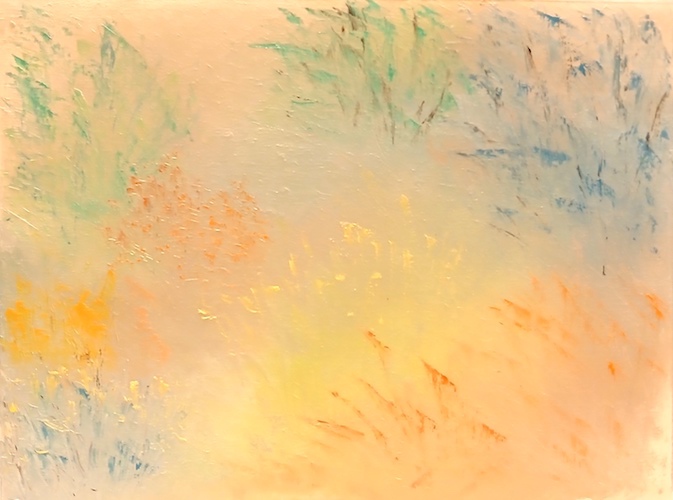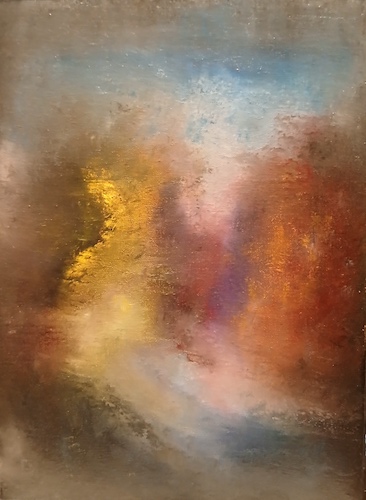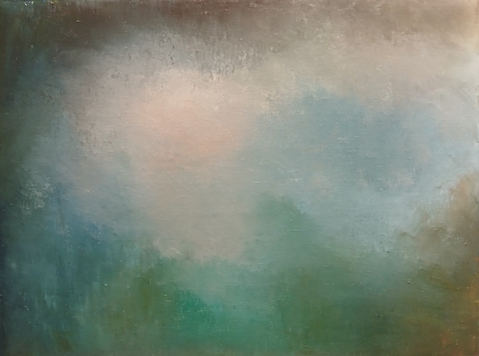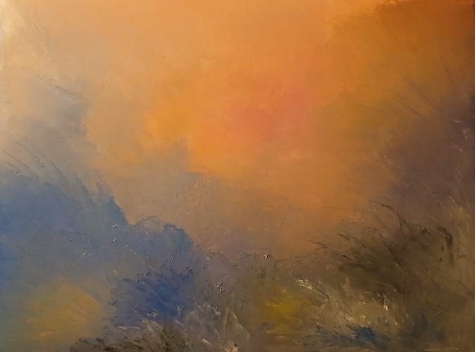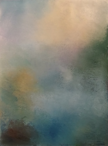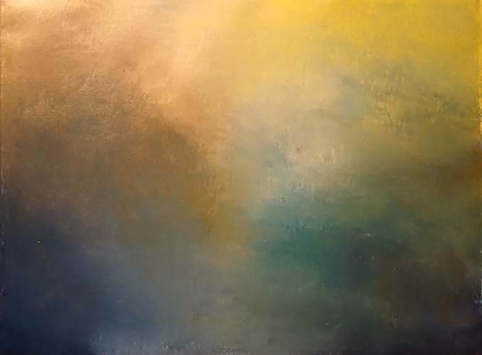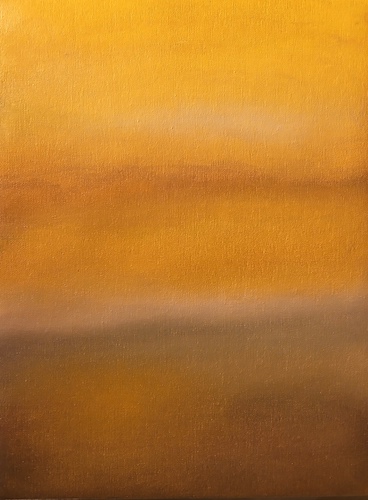 The Atmospherics oil painting series shares the deepest thesis of the Quantum Computational Creativity research program. These indistinct landscapes consist of continuous atmospheric color fields with no hard edges, no discrete boundaries, and embody in paint the same argument that quantum physics makes mathematically: that continuous reality resists the discrete categories human perception imposes upon it. The amber and teal color families recurring throughout the series appear again in the Phase III visual work, not by design but by natural convergence, the same aesthetic impulse finding expression in two different media. Phase V of the research program envisions making continuous quantum reality directly perceptible without the discretizing step of measurement. The Atmospherics paintings are an intuitive anticipation of that vision and are included here not as illustrations of the research but as works that share its spirit.