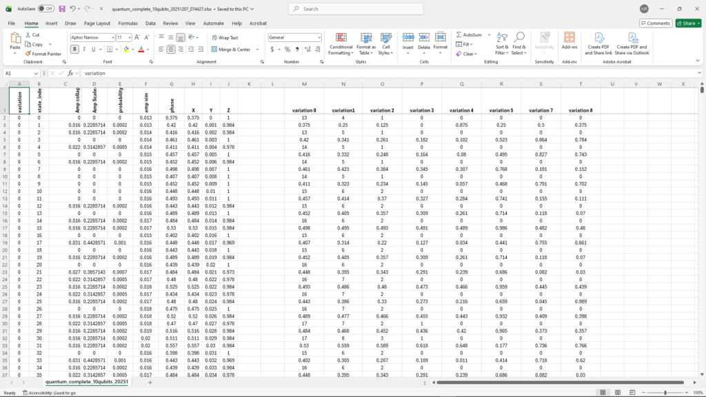 The audio material does not conform to conventional musical organization (tonal harmony, rhythmic periodicity, melodic contour). Rather, it exhibits characteristics aligned with quantum stochasticity—probability distributions, interference-driven amplitude modulation, and measurement-induced discretization. This suggests that while the sonification successfully captures quantum mechanical behavior, additional compositional structuring will be necessary to bridge quantum-generated material with aesthetic intelligibility and musical discourse.